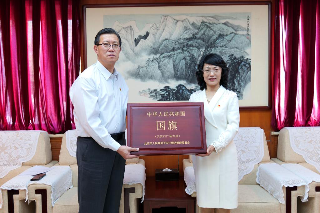 9月25日,北京市人民政府天安门地区管理委员会向塔里木大学赠送天安门广场国旗仪式在天安门地区管委会办公楼举行。天安门地区管委会党组成员、副主任姚辉向塔里木大学赠送国旗。塔里木大学党委书记张爱萍代表学校迎领国旗。塔里木大学党委副书记、副校长石长青,天安门广场管理处相关领导等参加。